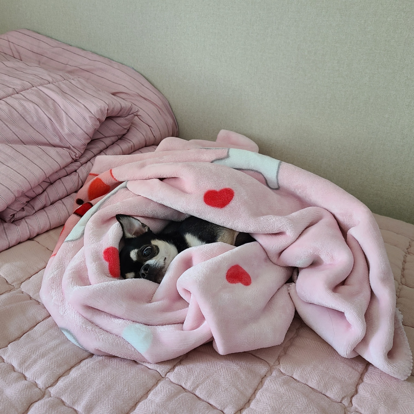 자다가 카메라 들이대서 깜짝 놀란 우리멍멍이 보시고