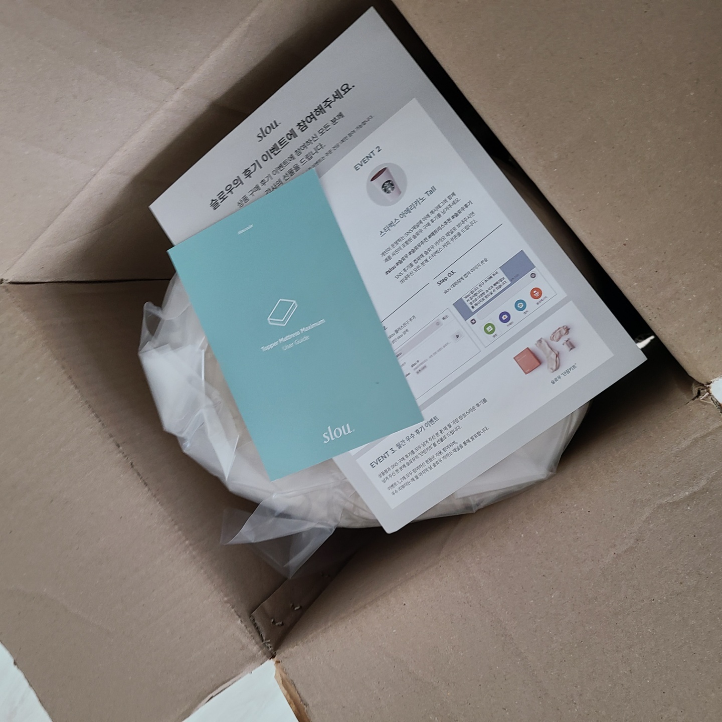 매트리스 토퍼가 얌전히 돌돌 말린상태로 들어있습니당