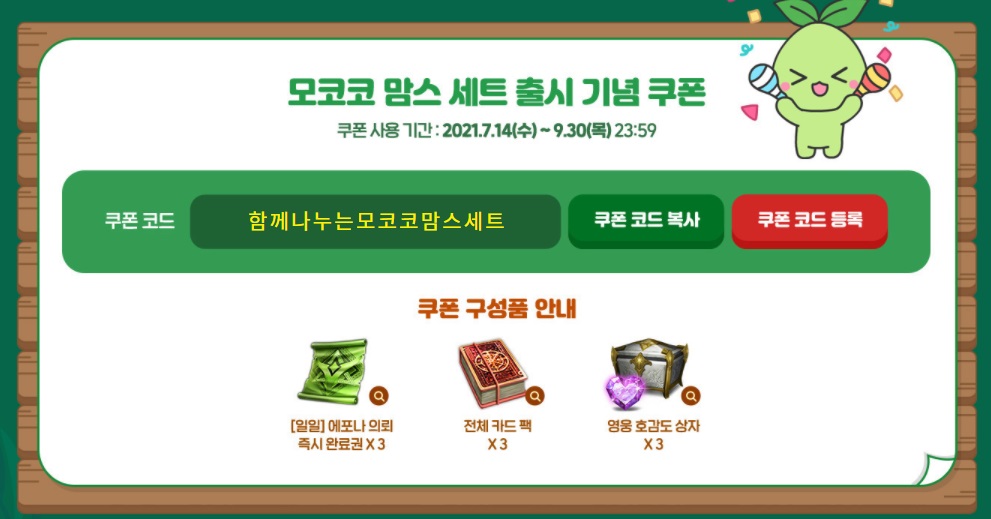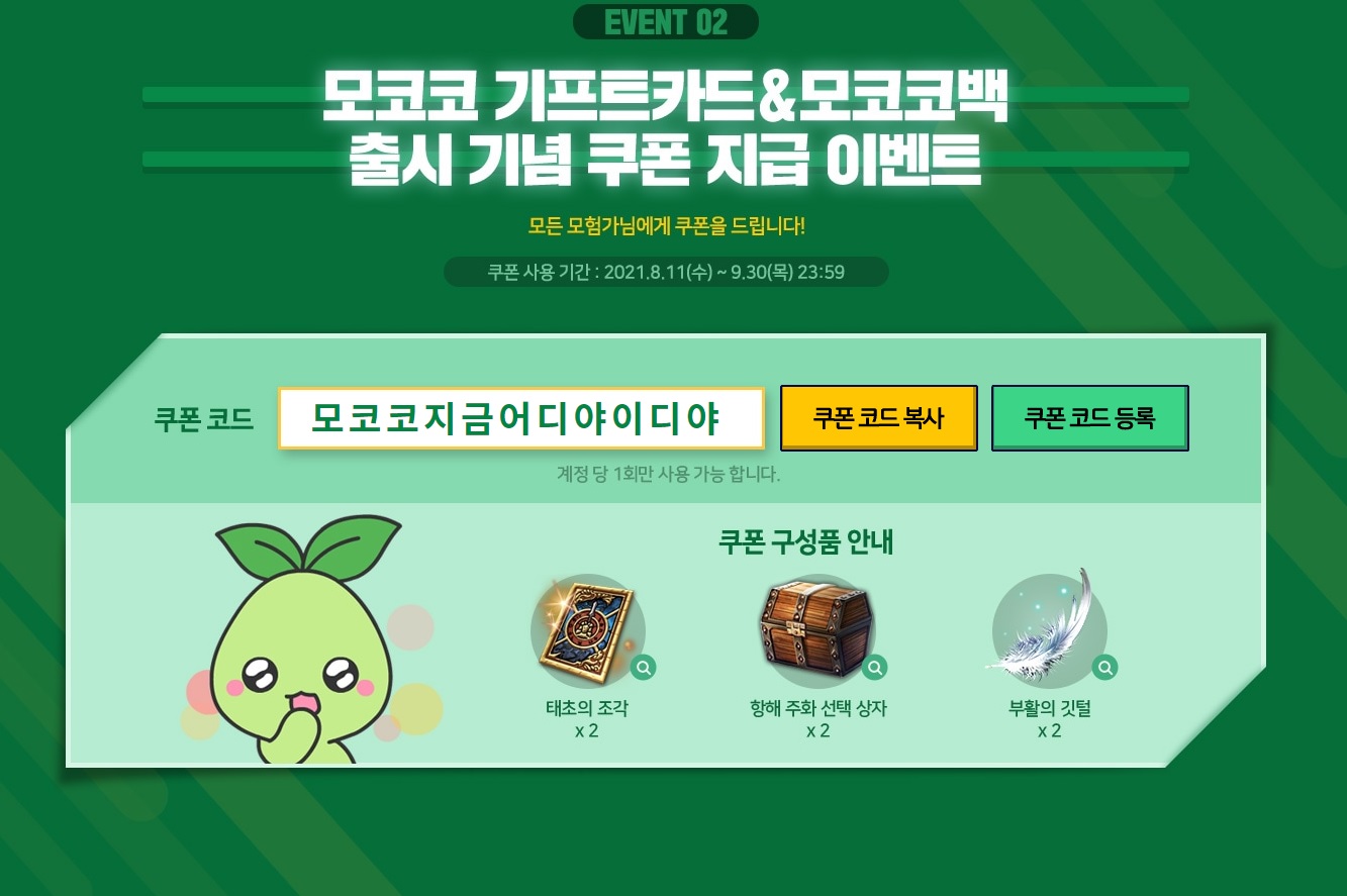 모코코아바타와 나루니탈것은 다른쿠폰에도 얻을수있으니 참고하세용..