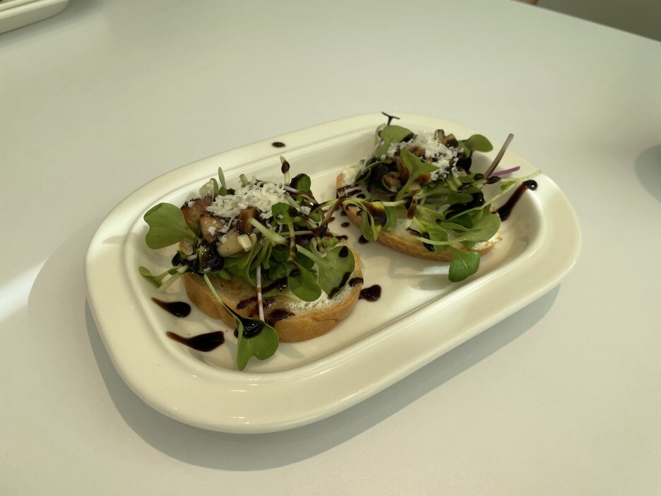 빵 위에 어린잎채소와 발사믹 소스 + 치즈