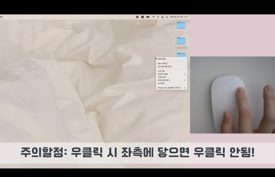 1. 영상편집을 위해 맥북을 구매했고 영상편집할때 보통 단축키와 마우스를 동시에 사용할 일이 많은데