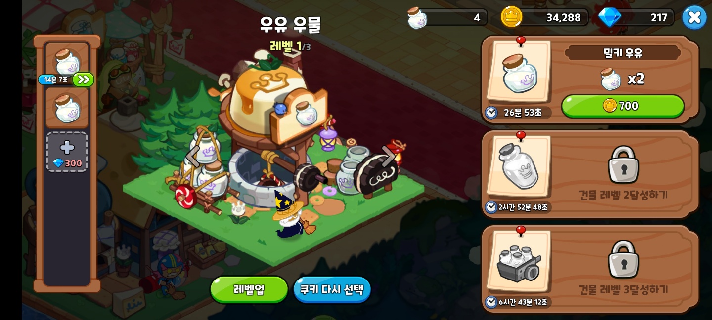 밀키우유 가공소, 카페 라떼, 러블리 인형공방은 쿠키성 업글할때 미션에 포함되서 지을수밖에 없는데요